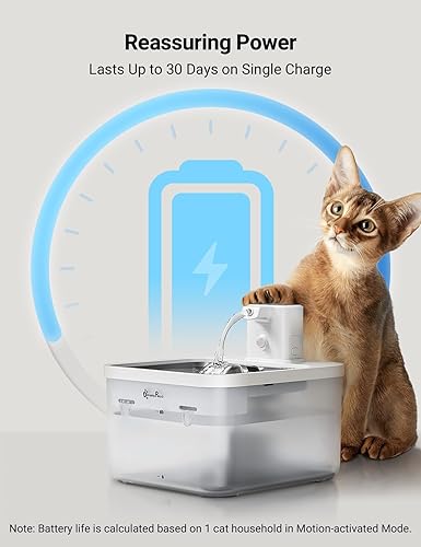 Superb Battery Life - With a built-in 4,000mAh rechargeable battery, the DownyPaws cordless cat fountain provides up to 30 days of fresh and clean water to your pets. Rest assured even during power outages or short trips. It's also super easy to charge thanks to the detachable design of the battery section, which is a self-contained unit that you can take apart to easily recharge