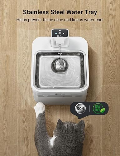 Drinking Made Fun - DownyPaws wireless cat fountain delivers a simulated faucet stream, in addition, in Motion activated Mode, the water runs when cats approach(within 5ft/1.5m and 120 angle degree), which perfectly simulates cats turning on the faucet on their own, greatly stimulating their interest in drinking. Meanwhile, you can also switch to Timed Mode that releases water every 15 minutes for 20 seconds. Dual water modes are optional, meeting different needs