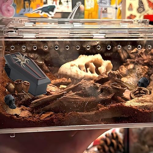 PACKAGE: Including 2 pcs jumping spider coffins, 4 pcs small skulls, 8 pcs magnets and 8 pcs adhesive
