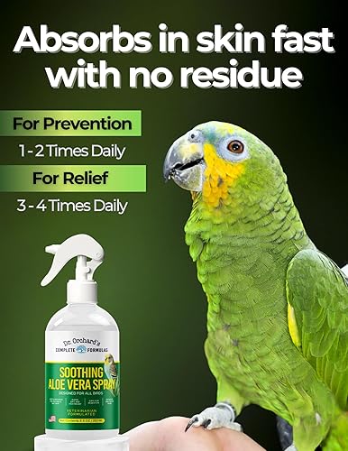 CHEMICAL-FREE & SAFE IF INGESTED: Pure care, no harsh additives. This gentle aloe-based spray is free from alcohol, synthetic fragrances, and harmful chemicals—making it completely safe even if your bird preens or nibbles right after use. Formulated with cruelty-free, clean ingredients you can trust, it’s suitable for daily use on all bird species. Provides rapid relief from dry and itchy skin conditions, helping to prevent feather plucking behavior in birds