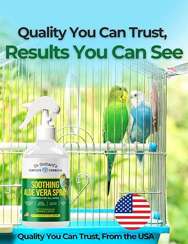 NATURAL RELIEF FOR MOLTING & PLUCKING: Molting and feather plucking can cause irritation, stress, and discomfort. Dr. Orchard’s Aloe Vera Spray for birds provides soothing, plant-based support by calming skin and hydrating feathers. Aloe vera, often called nature’s healing plant, promotes feather comfort and health—helping your bird through molting and reducing plucking-related dryness.