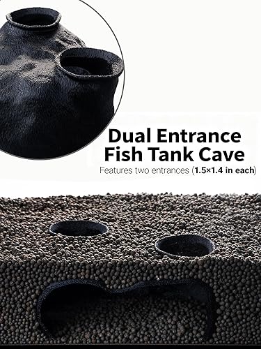 Dual Entrance Fish Tank Cave Features two entrances (1.5×1.4 in each), creating a connected fish tank tunnel for swimming, hiding, and exploring. Perfect as a versatile fish Shelter for aquarium habitats.
