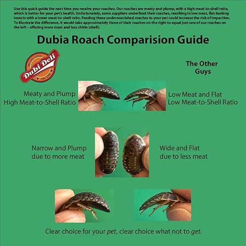 Specific Uses For Product: (function(f) {var _np=(window.P._namespace("DetailPageProductOverviewTemplatesJava"));if(_np.guardFatal){_np.guardFatal(f)(_np);}else{f(_np);}}(function(P) { P.when('A').execute(function(A){ A.on('a:truncate:po-attribute-truncate-4:updated', function(data) { var isTruncated = !data.truncateInstance.getIfTextFits(); var seeMoreElement = document.getElementById('po-attribute-see-more-id-4'); if(seeMoreElement) { seeMoreElement.style.display = isTruncated ? '' : 'none'; } }) }); })); Easy To Digest, High-protein, nutritious feeder insects ideal for reptiles, amphibians, birds, chickens, and fish. Dubia roaches are a superior alternative to crickets, offering excellent gut-loading potential and easy digestion, promoting better health and growth for your pet. Perfect for feeding insect-eating pets such as bearded dragons, leopard geckos, chameleons, and more. See more