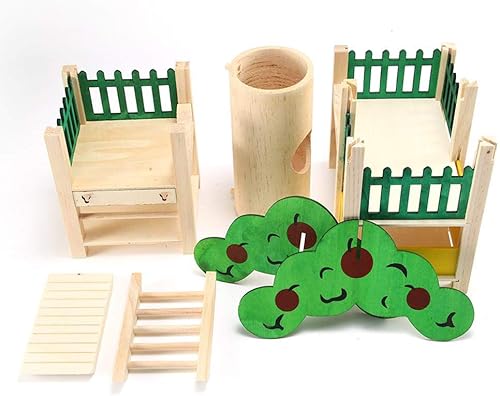 SUIT FOR: Wooden hamster toys are suitable for dwarf sugar glider, hamsters, rats, and other small pets.Not suitable for adult mice or guinea pig, this playground is a little small for them.