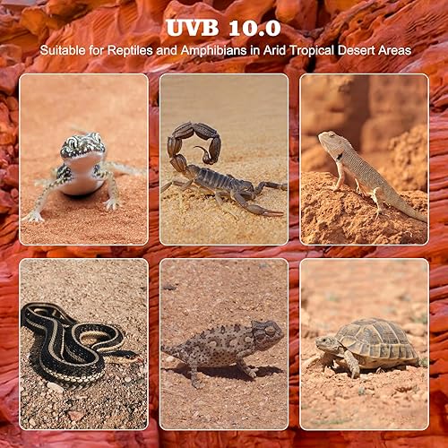 【Ideal for Desert/Tropical Rainforest Reptiles】:Our 10.0 UVB fluorescent tube is crafted from high-quality materials, providing stronger and brighter light. With a slower UVB degradation rate, the bulbs offer a longer lifespan and consistent high-efficiency UV. This makes them ideal for meeting the specific lighting needs of both desert and tropical rainforest reptiles, such as bearded dragons, lizards, geckos, snakes, tortoises, chameleons, frogs, and turtles. Our 10.0 UVB reptile light ensures the precise lighting conditions required for their growth and health.