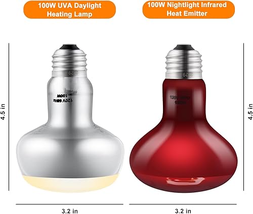 【Two Pack Combo】This pack includes two bulbs: one infrared basking lamp and one UVA reptile heat lamp bulb. They are designed to mimic the natural light variations throughout the day and night.
