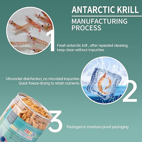 FAST FROZEN TECHNOLOGY : Freeze dried krill comes from the primitive waters of Antarctica, without any additives, and then through our advanced frozen drying process, the natural flavor and nutrients of the retained shrimp