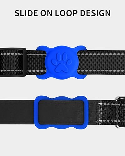 Slide-on Design: Our dog collar holder for Airtag is molded from one single piece of silicone, securely holding the tag and featuring a loop that slides through the collar, making it virtually impossible for the AirTag to come off