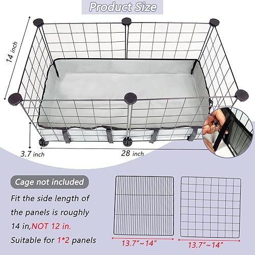 Assembled Size: Assembled dimension of guinea pig fleece cage liners is 14“x 28”, suit for DIY build 1 panels x 4 panels cage, fit the side length of the panels is roughly 14 in,NOT 12 in.