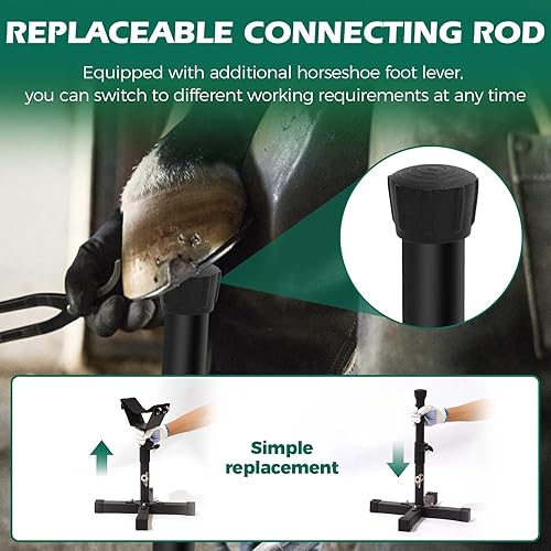 Multiple Applications: The Farrier Stand for Horses is widely suitable for equestrian centers, veterinary hospitals, farriers, and horse owners. With a detailed user manual and comprehensive after-sales service, it is a reliable choice for long-term hoof care.
