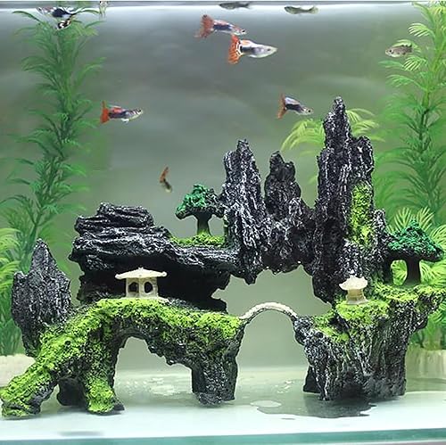 【Ultra-Realistic Natural Design】 Crafted from high-quality eco-resin, this aquarium rock decor mimics authentic stone textures and moss details, creating a stunning underwater landscape for betta tanks, planted aquariums, and nano aquascapes.
