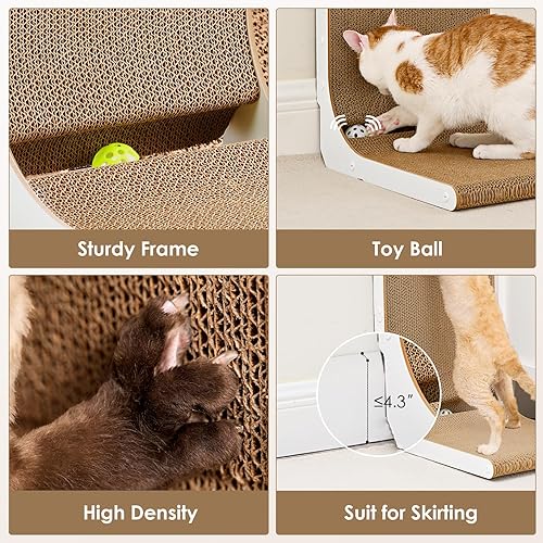 MULTIFUNCTIONAL USE: Cats can scratch, relax and stretch on our cardboard cat scratcher. Our cat scratch pad also comes with a toy ball to play with. It provides a safe and comfortable environment for cats.
