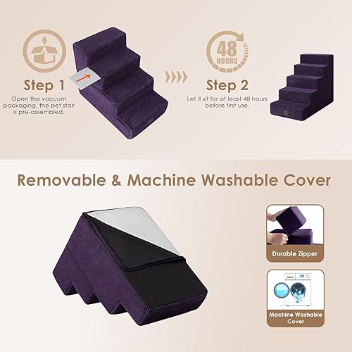 MULTIPLE STEP SIZES - This dog stair comes in 3, 4, and 5-step options. Our 3-step pet stair is ideal for sofas and low beds (up to 18 inches high), while the 5-step version is better suited for higher beds (up to 27 inches). If your bed is of medium height (up to 23 inches), please select the 4-step one.