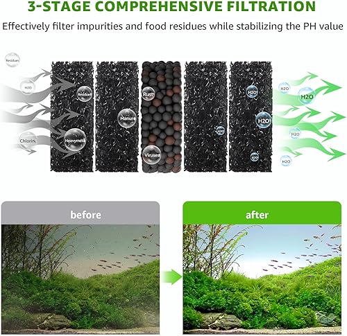3-Stage Comprehensive Filtration: Newly upgraded filter cup with sponge, biofiltration balls & activated carbon balls, which can effectively filter impurities and return the clean water to the fish tank to realize water filtration and circulation. Cleaner than ordinary sponge filter cups and filter bags, effectively filter 99% of impurities from water. And the filter media can be washed and reused repeatedly, keep your fish healthy and energetic