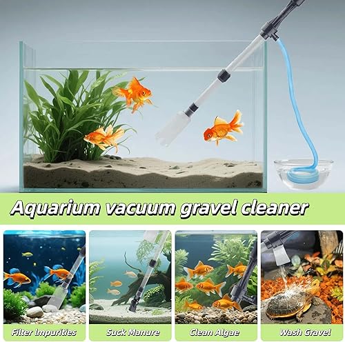 All-in-One Cleaning System Siphon fish waste, clean gravel, and filter water simultaneously. Reduces water change frequency by efficiently removing hidden debris.