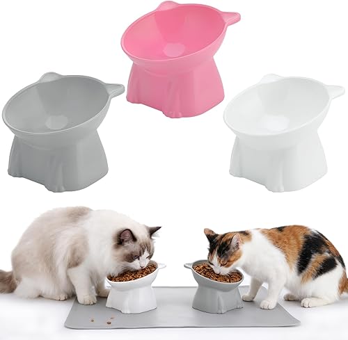 Elevated cat food bowls set: You will receive 3 raised cat bowls in white, gray, and pink to add a vivid of color to your pet's space. this gorgeous color scheme not only attracts your cat’s attention, but also adds color to your home environment, making pet dining a stylish and enjoyable experience.
