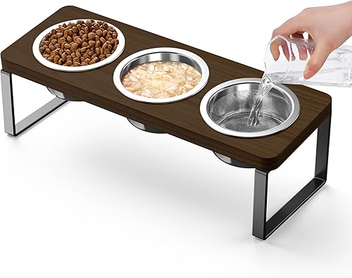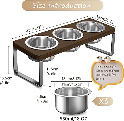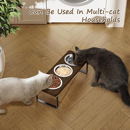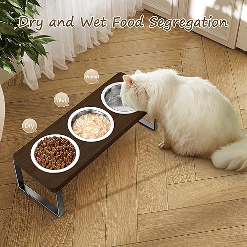 【Durable and Sturdy】The cat food bowl is made of high-quality stainless steel, which is durable, rust-resistant, and easy to clean. The stand is also made of high-quality wood, which is sturdy and durable, ensuring that the bowl is stable and won't tip over easily.