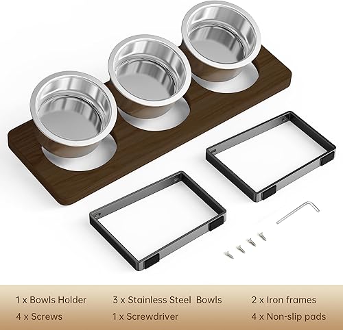 【3 Stainless Steel Bowls】The set includes 3 stainless steel bowls, each with a capacity of 18 ounces. The bowls are easy to clean and can be washed in the dishwasher. They are also suitable for cats and puppies of different sizes.