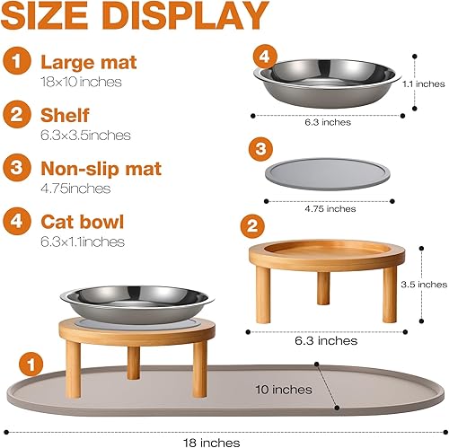 【3.5-Inch Raised Design】The 3.5-inch elevated cat bowls have been proven to reduce the stress on your cat's neck and stomach when eating, prevent vomiting, and are suitable for digestion. In addition this height is adapted by most cats, kittens or puppies!