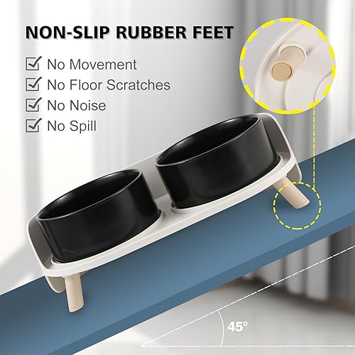 No More Messy Floors - This raised dog bowl with a splash proof guard which helps prevent the spills or messes splashing to the floor, saving your time on mopping and wiping. The bottom of each leg is equipped with non-slip rubber to prevent sliding when the pets are eating, and provide protection for your floors.