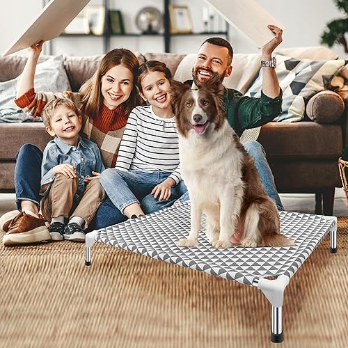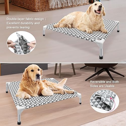 【Perfect for Indoor and Outdoor Use】With a high load-bearing capacity and no-slip rubber feet, The non-slip rubber feet keep the bed in place, even on slippery surfaces.keep your pet secure.Our outdoor dog bed is made of high-quality stainless steel that's resistant to peeling and fading. It's perfect for harsh outdoor environments.
