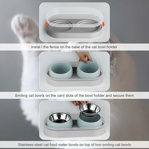 Easy To Install and Clean:Elevated cat food bowls and Elevated dog bowls are removable and easy to take it out to wash, transparent fencing prevents food and water spilling onto your floor and keep clean. stainless steel cat bowl is dishwashers safe, freeing your hands.