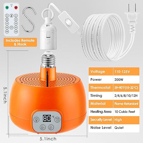 Safety Design: The chicken heater made of flame retardant material, the shell is insulated for a long time without heating up, with overheating protection to ensure the safety of the chicks during use. 5 FT ultra long power cord has UL certification, which further protects your poultry or pets
