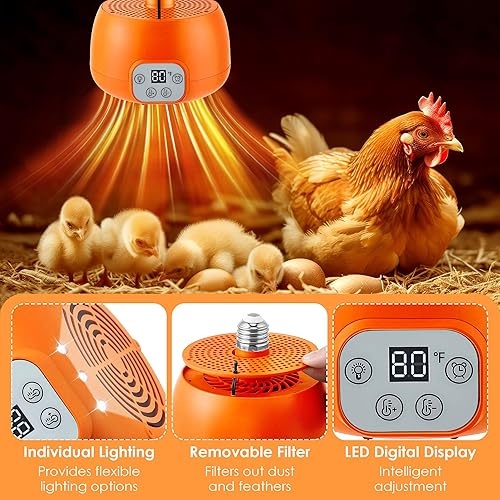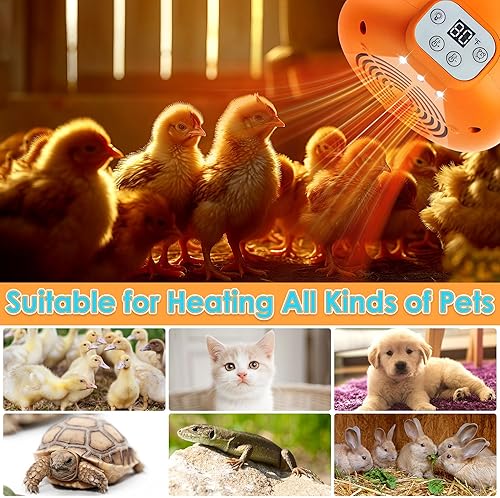 Timer and Memory Function: The chicken heating lamp features an LED digital display with a built in 2/4/6/8/10/12H timer, with timed off function, adjusting the heating cycle to ensure that the chicks are always in a comfortable environment; The memory function can automatically restore the previous temperature setting after power failure