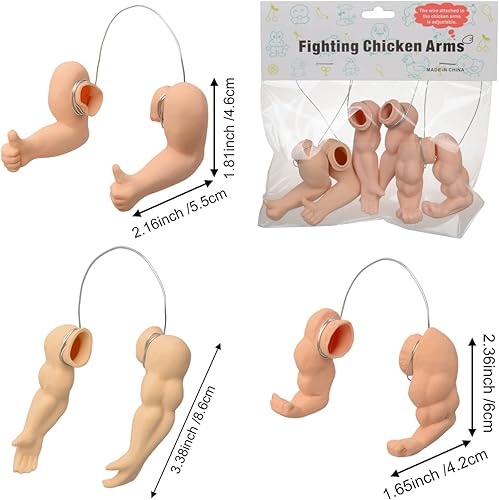What will you get: This package Include 1 pairs Strong Muscle ,1 pairs Thumb up chicken arms and 1 pairs Hug Chicken arms