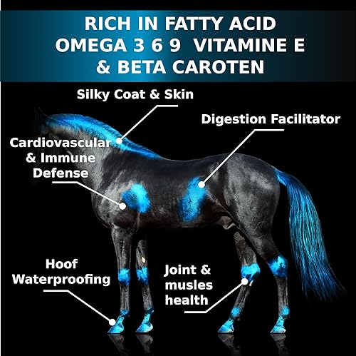 Great health benefits : Rich in Fatty Acid, Omega 369 and Vitamin E, Beta Carotene, our food product will offer your pets many benefits : Coat defense, silky skin and hoof waterproofing, digestion facilitator, Joint and musles health, Cardiovascular and immune defense