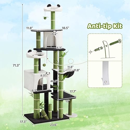 Multifunctional Cat Tower:Our cat tree brings endless fun to cats. Top perch for cats to bask in the sun. Multiple layers of platforms in various shapes meet cats' needs for climbing, jumping and resting. Sisal scratching post provides scratching fun
