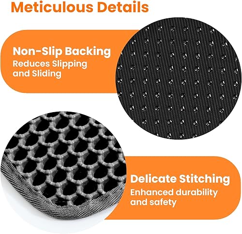 Non-Slip & Urine-Proof: The fully enclosed kitty litter mat bottom layer and tight seal are specially designed to stop any liquid from leaking, keeping your floors dry and protected. The bottom also features a high-quality non-slip backing that keeps the mat firmly in place, no matter how playful or active your cat gets.