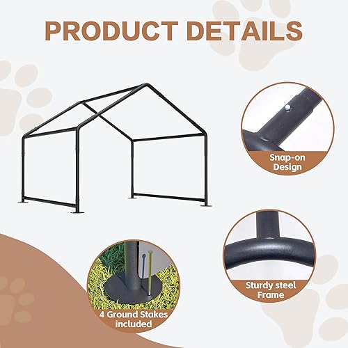 【DURABLE & STURDY】: Built to last with a rust-resistant steel structure for long-term stability and reliability. The dog shelter frame features a premium powder-coated finish that resists corrosion and rust. Its solid construction holds up well in various outdoor conditions, offering dependable protection and long-term use for your pet.