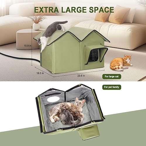 【Extra Large Space】This heated cat house, which measures 30.5"×19.5"×21.8", is a spacious yet cozy shelter - great for cat families, multiple cats, large breeds, or small animals. Its extra-large space gives pets plenty of space to relax and stretch out comfortably.