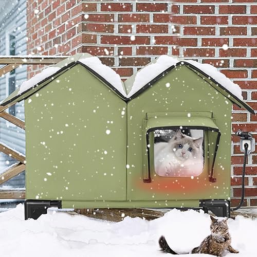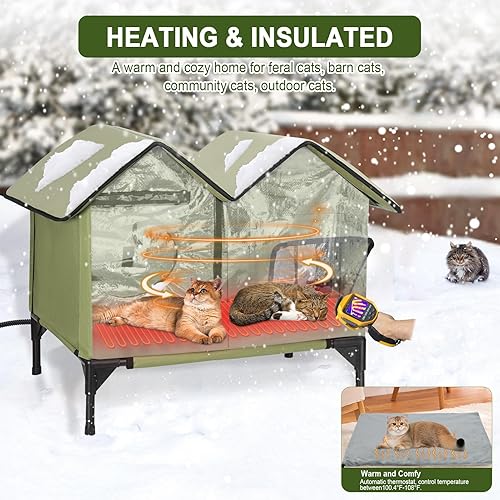 【Insulated Outdoor Cat House】Helping our little furry friends get through the cold winter. This heated cat house for outdoor cats features aluminum foil insulation and comes with a safety-certified heating pad that can keep cats warm even in sub-zero temperatures. Provides a cozy home for outdoor, community, and feral cats.