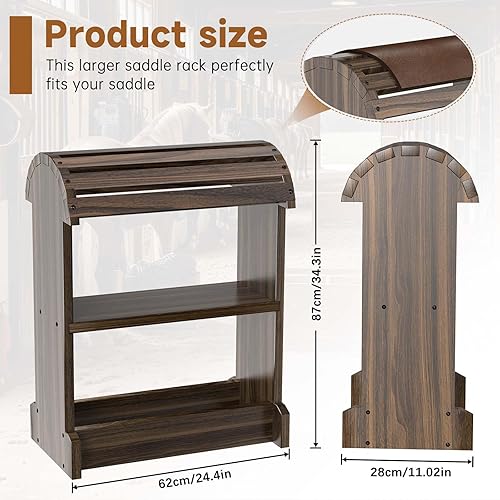 Enhanced Stability: The extra crossbar of the horse saddle stand not only offers additional storage space for horse tack organizer(like hoof picks, brushes, reins), but also boosts the rack’s stability for a more secure hold