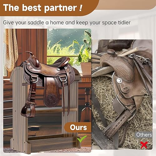 Paulownia Wood Construction: The portable saddle rack made from solid paulownia wood, the natural grain adds a touch of elegance and perfectly complements your saddle setup. Includes all necessary tools and accessories for hassle-free assembly, so your western saddle rack and trophy saddles will be ready to use in minutes