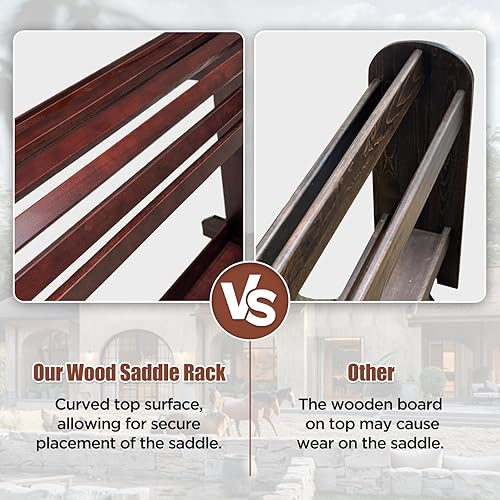 [Gentle Arc Design Protects Horse Saddle]:The arched saddle rack stand surface mimics your saddle's natural shape, preventing pressure points and leather abrasion. Unlike flat racks, our contoured design maintains saddle horse integrity while displaying your prized equestrian gear