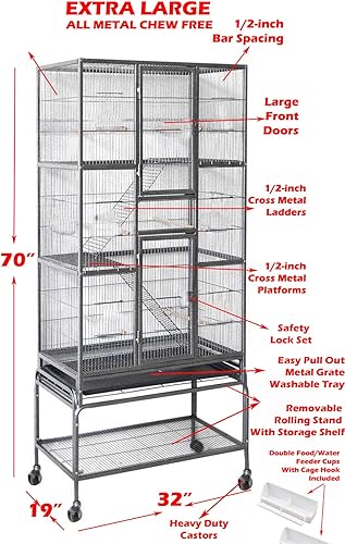 【Extra Large: 32 x 19 x 70-inch High】【Cage Only: 30 x 18 x 52-inch High】; 【Stand With Rollers Only: 32 x 18 x 18-Inch High】
