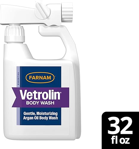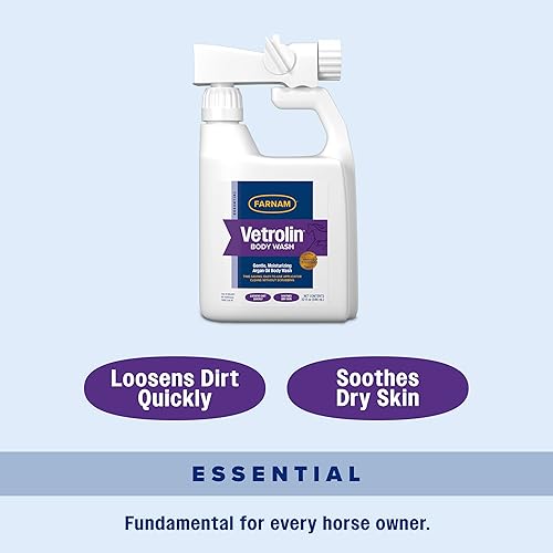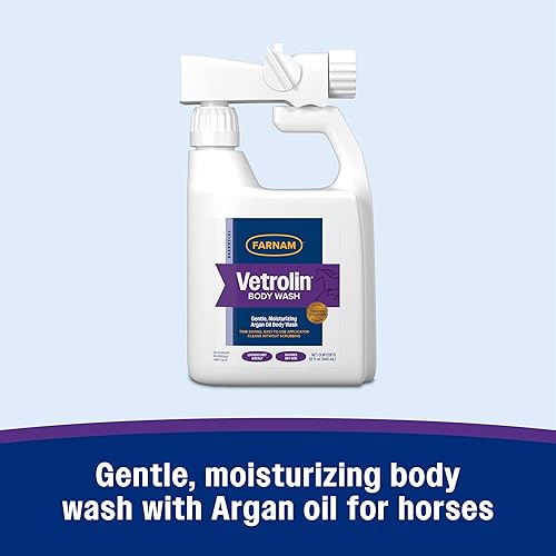 GENTLE AND MOISTURIZING body wash conditions coats and soothes dry skin. Keeps manes and tails manageable and tangle-free. Rinses out easily and leaves the signature Vetrolin scent.