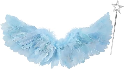 Elegant Feather Angel Wings - Designed with layers of soft, natural white feathers, large angel wings create a realistic, graceful, and eye-catching look. Paired with a star-shaped wand, perfect for adding a magical touch to any costume or outfit, angel costume bring out the beauty and elegance of angelic or fairy-inspired styles