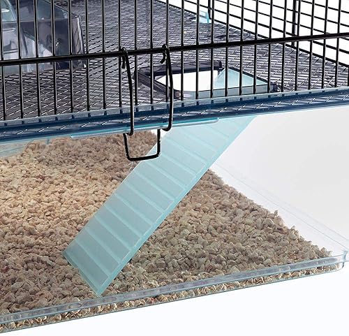 Hamster Cage Includes 2 Spacious Floors; First floor is a deep 4.75 height inches to promote playful borrowing w/ a Hamster friendly plastic ramp (no pinched toes) for easy access to the plastic top level where their food dish, water & hide away preside