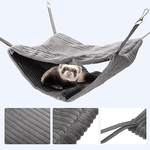 Easy Installation Hooks: The inclusion of 4 convenient metal hooks with this rat hammock simplifies the setup process by allowing easy attachment to any wire cage. These versatile hooks enable you to effortlessly expand your pet's living area, creating additional space for them to move around and engage in various activities within their enclosure.