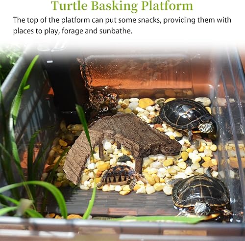[Natural Bark Appearance]: The bark appearance of the basking platform simulates the living environment in the wild, bringing tortoises back to the "primitive" environment. The rough texture increases friction and can relieve itching