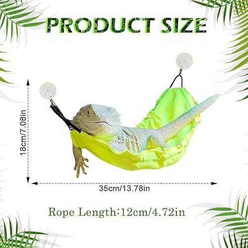 Product size:The size of Bearded Dragon Hammock is 13.78x7.08x0.39 inches,and the length of the hanging rope is 4.72 inches , which can be hung in a cage or used in water tank