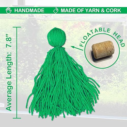 【SAFE MATERIAL】Our fish spawning mop is made with acrylic yarn, with a cork to help it float.