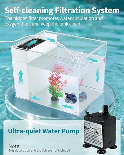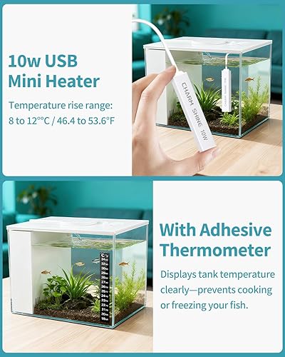 Built-in Preset Heater & Thermometer: The included mini 10W heater automatically maintains a perfect tropical temperature of 78°F for Betta fish and other tropical pets. The external thermometer lets you monitor water temperature at a glance, ensuring a healthy and stress-free environment.
