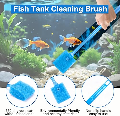 The product kit includes: An efficient fish tank cleaning kit, including a aquarium net for removing debris, a siphon gravel cleaner for quickly sucking out muddy water, residual food and fish droppings from aquarium vacuum gravel cleaner, an algae scraper for keeping clear vision, and a sponge brush for gentle and effective surface cleaning, totaling 4 products.
