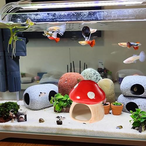 High-quality Ceramic Material-- Made from high-quality ceramic material, this aquarium mushroom cave can filtrate water and is suitable for both freshwater and saltwater environments, ensuring a safe and healthy habitat for your fish.