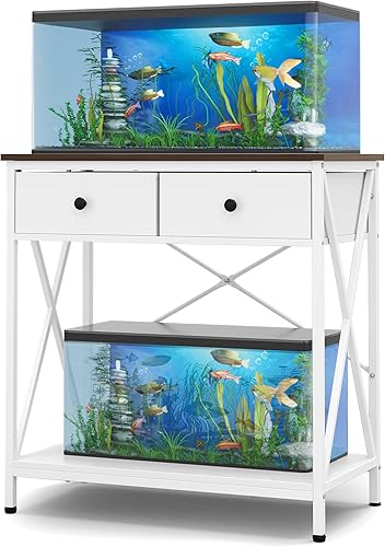 Maximized Space with a 2-Tier Design: Our tank stand features a two-tier design, perfect for 40-50 gallon fish tanks on the top surface (35" x 19.4") and small 20 gallon aquariums on the bottom shelf. Additionally, the fish tank stand includes two removable, foldable drawers, providing convenient storage for fish food, supplies, and equipment. The flexible design allows you to adjust the drawers to fit your storage needs.